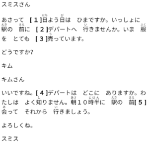 7. A「山下さんは?」 B「となりの へやで (-ー★ー) して います。」
