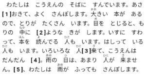 12. 毎週 日曜日は としょかん( )本を 読みます。